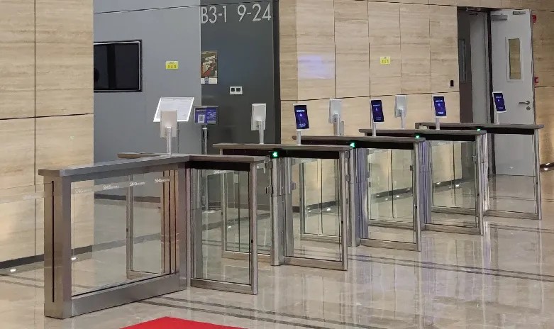 達(dá)實(shí)AI人臉識(shí)別通道可與梯控系統(tǒng)、訪客系統(tǒng)聯(lián)動(dòng),支持人臉自動(dòng)派梯、人臉訪客通道權(quán)限智能識(shí)別,系統(tǒng)支持口罩識(shí)別與測(cè)溫功能,全面實(shí)行深圳報(bào)業(yè)大廈內(nèi)閘機(jī)通道處無人值守的無感體驗(yàn)。