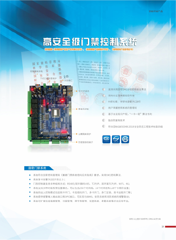 • 國(guó)密四級(jí)認(rèn)證門禁系統(tǒng) - 符合國(guó)家密碼管理局標(biāo)準(zhǔn),確保訪問(wèn)安全