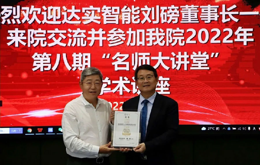 學(xué)術(shù)講座尾聲,盧洪洲院長親自為劉磅董事長現(xiàn)場頒發(fā)了深圳三院名師大講堂演講嘉賓榮譽(yù)證書,并對本次演講的內(nèi)容給予了高度的認(rèn)可與肯定,并表示在今后的合作中,希望雙方能對達(dá)實(shí)在智慧醫(yī)院建設(shè)的先進(jìn)理念和最新技術(shù)加強(qiáng)交流和探討,并積極運(yùn)用物聯(lián)網(wǎng)技術(shù),為深圳的抗疫防疫提供更大助力。