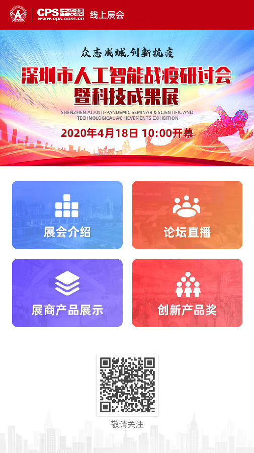 2020年4月18日10:00,“眾志成城.創(chuàng)新抗疫——深圳市人工智能戰(zhàn)疫研討會(huì)暨科技成果展”線上準(zhǔn)時(shí)開(kāi)幕。