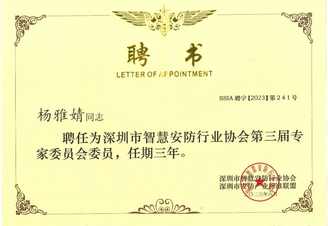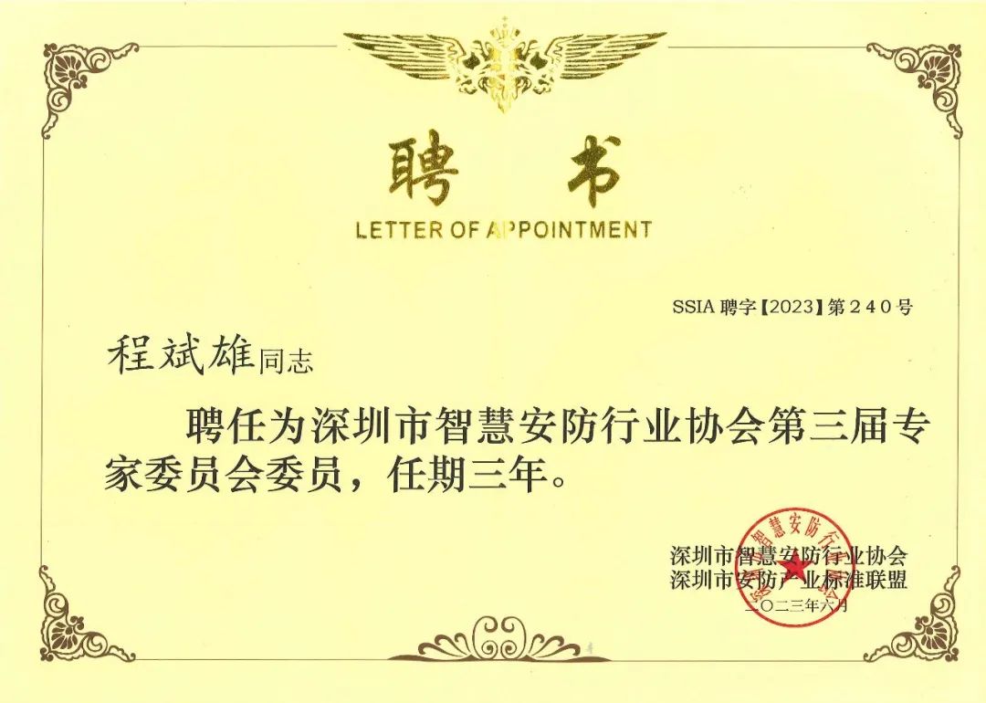 達實物聯(lián)總工程師汪廣、市場總監(jiān)黃志勇,空間場景高級項目總監(jiān)程斌雄、研發(fā)中心副總監(jiān)楊雅婧成功入選深圳市智慧安防行業(yè)協(xié)會專家委員會專家。