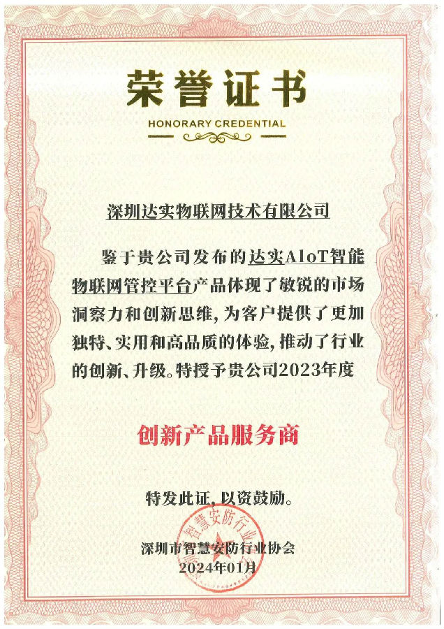 會上,深圳達(dá)實(shí)物聯(lián)網(wǎng)技術(shù)有限公司憑借達(dá)實(shí)AIoT智能物聯(lián)網(wǎng)管控平臺在業(yè)內(nèi)的創(chuàng)新應(yīng)用成果,榮獲“2023年度創(chuàng)新產(chǎn)品服務(wù)商”獎(jiǎng)項(xiàng)!
