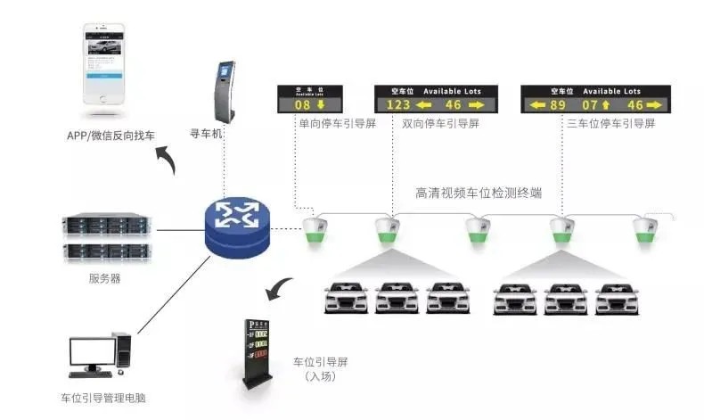 達實大廈視頻車位引導系統(tǒng)可針對車位安裝視頻車位探測器 ,用于抓拍車輛照片、識別車位空滿狀態(tài)、提取車牌并控制車位指示燈。視頻控制器將采集到的信息進行分析處理 ,并將運算后的剩余車位數(shù)據(jù)發(fā)布給場內(nèi)各個引導屏,引導車輛迅速入位 ,解決駕車者停車難等問題,同時在主要客流電梯口附近設置查詢終端機,車主只需要輸入車牌號即可精確查詢到車位。