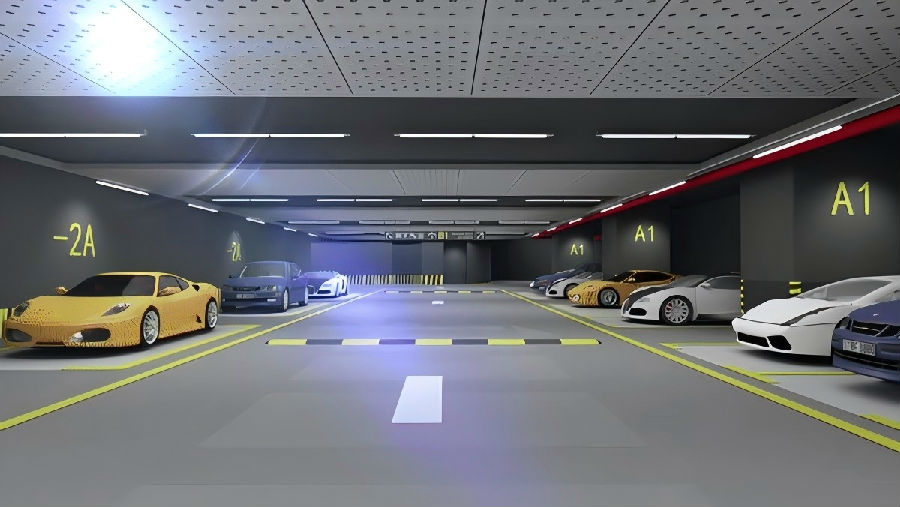 達實大廈智慧停車場規(guī)劃500個停車位,其中普通車位328個,立體機械車庫172個。大廈倉儲式機械停車庫,全智能地下立體停車庫,配置第六代智能搬運機器人,客戶存取車無需進入地下室,只需在進出口處刷卡或者點擊手機APP,智能機器人即搬運汽車進出,保障車輛安全、人身安全。