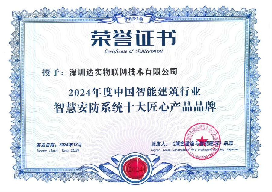 憑借多年來在建筑智能化行業(yè)的探索與實踐、創(chuàng)新與成果,深圳達實物聯(lián)網(wǎng)技術(shù)有限公司在眾多品牌中脫穎而出,連續(xù)多年榮獲“2024建筑園區(qū)智慧管控平臺十大創(chuàng)新品牌”及“2024智慧安防系統(tǒng)十大匠心產(chǎn)品品牌”兩項大獎。