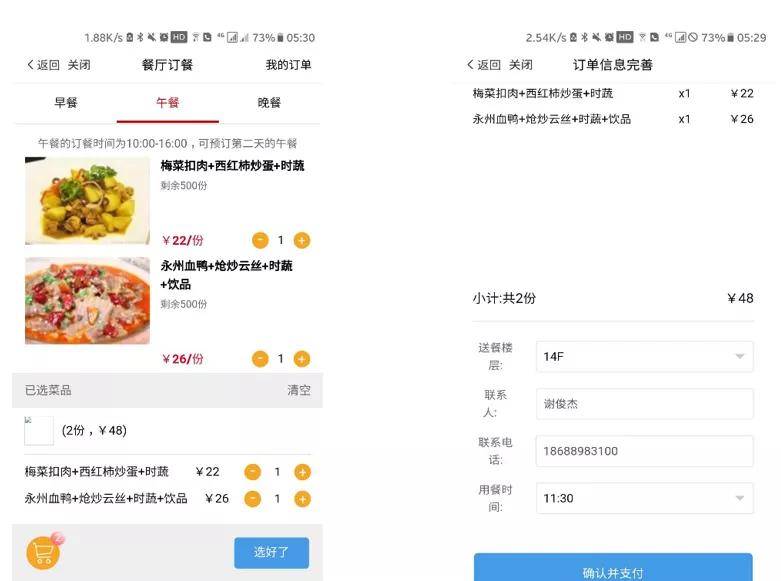 訂餐查詢 :查詢業(yè)主和物業(yè)人員訂餐信息,方便食堂備餐。