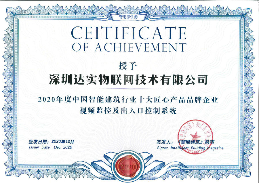 評選秉承著公、平公、正公開的原則,通過網上投票和專家評選的方式產生十大匠心產品品牌企業(yè)。達實物聯連斬兩項榮譽--“2020年度中國智能建筑行業(yè)十大匠心產品品牌企業(yè)視頻監(jiān)控及出入口控制系統(tǒng) ”,“智慧城市運營管理平臺 ”。