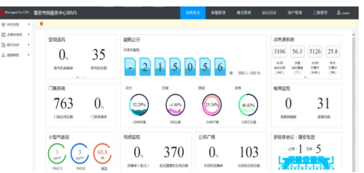 IBMS綜合管理通過集成園區(qū)內(nèi)21個智能化子系統(tǒng)、以及多達25000個實時監(jiān)測控制點位,實現(xiàn)對全園區(qū)、全專業(yè)、全時態(tài)的深度覆蓋,從而達到自動化監(jiān)管與控制的目的。同時,通過IBMS系統(tǒng)和智慧云平臺對接,實現(xiàn)基于雄安云的智慧應用。主要內(nèi)容:通信系統(tǒng)(綜合布線,計算機網(wǎng)絡、電話交換系統(tǒng)、手機網(wǎng)絡信號覆蓋、有線電視、無線對講系統(tǒng))、綜合安防系統(tǒng)(視頻監(jiān)控、門禁系統(tǒng)、停車場管理、防盜報警、訪客管理、巡更系統(tǒng))、建筑設備監(jiān)控系統(tǒng)(空調(diào)樓控、能耗監(jiān)測、智能照明、冷熱源系統(tǒng)、環(huán)境監(jiān)測)、多媒體系統(tǒng)(公共廣播、信息發(fā)布、多媒體會議、會議預約)、機房工程等,通過一個平臺二十一個系統(tǒng)全接入,提高設備管控效率。大數(shù)據(jù)智慧運營管理平臺的框架結構分為用戶層、終端平臺層、應用層、數(shù)據(jù)及服務支撐層、計算與存儲層、網(wǎng)絡通信層、物聯(lián)感知層、執(zhí)行層、事物層,以及標準規(guī)范體系、安全保障體系、運營管理體系。