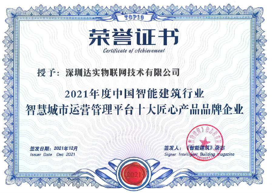 快訊 | 傳承時代匠心,弘揚工匠精神,達實物聯(lián)斬獲2021智能建筑兩項大獎